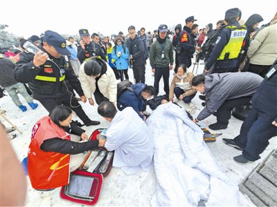 星报讯 1月13日,记者获悉,中国科大附一院日前收到来自黄山市风景区执法局的一封感谢信,信中对 该院职工周伟伟元旦期间在黄山风景区紧急救助突发急症游客的义举表达诚挚谢意。这场发生在黄山光 明顶的生命救援,在多方协同配合下,在"黄金十分钟"内成功挽救游客生命,谱写了冬日里一曲生命至 上、见义勇为的暖心赞歌。 (来源:市场星报) 2026年元旦,黄山风景区银装素裹的美景吸引了大批游客前来观赏。当天中午,光明顶平台游客如织, 一名年轻男性游客突然倒地不起,情况危急。此时,正在光明顶凉亭休息的中国科大附一院南区二部手 术室护士长周伟伟听到呼救声。她注意到凉亭内配备的橙色自动体外除颤器(AED),取下设备,奔 向事发地点。到达现场后,周伟伟立即对患者进行检查,发现其面色青紫、呼吸异常,脉搏与大动脉搏 动消失,瞳孔散大。时间就是生命!她迅速将患者平卧,按照AED语音提示为其贴上电极片。经AED 分析心律后,提示需要进行电击除颤。一次电击后,周伟伟紧接着实施高质量心肺复苏。与此同时,现 场热心游客第一时间拨通120急救电话,清晰说明事发位置和患者状况。救援很快汇聚了更多力量。两 名路过的医务人员参与抢救;周围游客有人递上保 ...