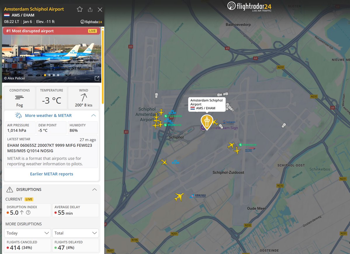 阿姆斯特丹机场数百航班取消,中荷航线部分受阻