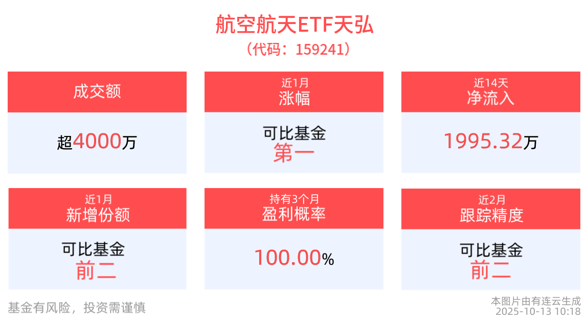 低空经济赛道持续火热,航空航天ETF天弘(159241)交投活跃,获资金逆市加仓!航空航天行业高景气延续