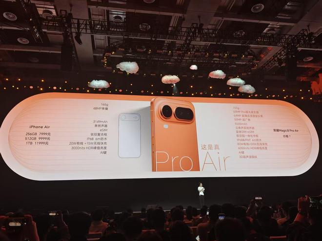 (文/观察者网 吕栋) 1月19日晚上,荣耀轻薄手机Magic8 Pro Air等产品亮相。与之前发布产品有些不同的是,荣耀CEO李健并没有亮相发布会,而是由荣耀产品线总裁方飞简单 开场后,全程由年轻的产品经理主讲,再加上与泡泡玛特联名等动作,凸显荣耀向年轻化转型的策略。 在定价策略上,荣耀Magic8 Pro Air起售价来到了4999元(12GB+256GB),虽然比苹果Air的7999元起售价便宜不少,在Air中性价比凸显,但要比华为 Mate70 Air的起售价高出800元,同时也高于华为Mate80的4699元起售价。而在电商平台上搜索,4000元-5000元价位段,小米OV包括荣耀也有多款旗舰机可 选,凸显荣耀Air定价的挑战性。 荣耀Magic8 Pro Air是主流安卓阵营首款Air。与之前爆料的一样,这款手机是6.31英寸小直屏,厚度为6.1mm,没有苹果薄,但比华为Mate70 Air的6.6mm要 薄一些,而在机身重量上,荣耀的Air降到了155克,苹果和华为的Air分别重165克和208克。 在硬件上,除首次搭载联发科天玑9500旗舰处理器外,荣耀也有点盯着苹果Air短板打的意思。比如 ...