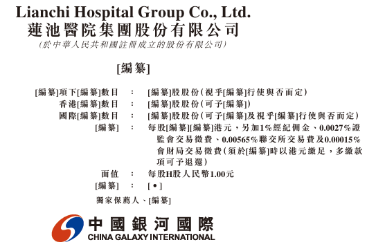 莲池医院递表港交所,中国银河国际为独家保荐人