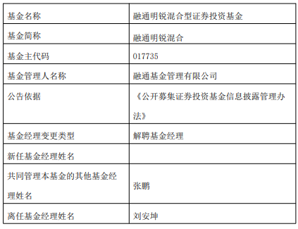 刘安坤离任融通明锐混合融通跨界成长灵活配置混合