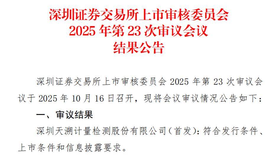 Core Viewpoint - Shenzhen Tian Su Measurement and Testing Co., Ltd. has successfully passed the IPO review for the ChiNext board, aiming to raise approximately 424 million yuan for various projects and working capital [1] Company Overview - Shenzhen Tian Su Measurement specializes in measurement calibration, testing, and certification services, serving multiple sectors including biomedicine, automotive, new energy, rail transportation, energy and power, light industry, and equipment manufacturing [1] IPO Details - The IPO application was accepted on June 29, 2023, and entered the inquiry stage on July 22, 2023 [1] - The company plans to invest the raised funds in enhancing measurement and testing capabilities at its Shenzhen headquarters, constructing regional measurement testing laboratories, developing a digital center, and supplementing working capital [1] Market Considerations - During the listing committee meeting, the committee requested the company to explain the sustainability of its performance growth in light of its high sales expense ratio and low R&D investment intensity, considering industry technological upgrades and competitive dynamics [1]