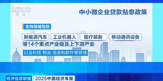 (央视财经《经济信息联播》)今天(1月20日),财政部等部门陆续发布财政金融协同促内需一揽子 政策。财政部有关负责人表示,激发民间投资是这次一揽子政策的"重头戏"。政策有信贷、有贴息、有 担保、有补偿,惠及领域广,支持力度也比较大。对企业来说,有哪些直接利好? 财政部有关负责人介绍,最新推出的中小微企业贷款贴息、民间投资专项担保计划、支持民营企业债券 风险分担机制、优化实施设备更新贷款财政贴息等四项政策将同向发力,更好支持民间投资。其中,中 小微企业贷款贴息政策,主要对中小微民营企业贷款予以贴息,支持领域包括新能源汽车、工业机器 人、医疗装备、移动通讯设备等14个重点产业链及上下游产业,以及科技、物流、信息和软件等领域, 贴息为贷款总额的1.5个百分点,最长贴息期2年,可享受贴息政策的单户贷款额度上限是5000万元。 另一方面,为降低融资门槛,解决民营企业融资难的问题。新出台的"民间投资专项担保计划"政策,引 导银行新增投放5000亿元中小微企业民间投资贷款。符合条件的中小微民营企业,因为生产场景的拓 展、改造、升级,以及改扩建厂房、店面装修等生产经营活动需要的中长期贷款,均可获得支持。单家 企业可享受担保的 ...
