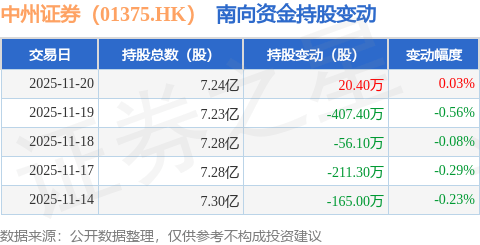 中州证券(01375.HK):11月20日南向资金增持20.4万股