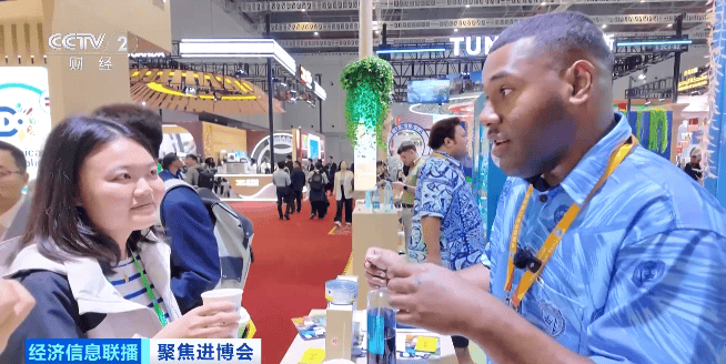 (央视财经《经济信息联播》)第八届中国国际进口博览会汇聚155个国家、地区及国际组织参展,其 中既有初来乍到的新面孔,更有如约而至的老朋友。作为连续八年参展的"全勤生",南太平洋岛国斐济 今年也再次来到上海,带着新朋友奔赴进博之约。 不管是象征着斐济文化的Kava仪式,还是第一次在中国市场亮相的Bula咖啡,都有很多人前来品尝体 验。阿佩尼撒在展台边忙前忙后,对他来说,这不仅是一项工作,更是为远在万里之外的家乡尽一份 力。 斐济展台工作人员 阿佩尼撒:今天已经有126个人来(尝过咖啡)了。我们把斐济的产品从家乡带到中 国,为斐济的产品提供了更多机会,被全世界了解,再进入更大的市场。 虽然是第一次来进博会,斐济小伙阿佩尼撒却像是一名展会的老熟人,介绍起产品头头是道,很难听出 他的中文才学了一年。 阿佩尼撒之所以能够来到中国,是借着山东聊城大学针对太平洋岛国留学生的专项计划,一年来,他对 中国的了解多了不少。而在几个月前,作为进博会"全勤生"的斐济开始筹备布展工作,今年,他们特别 安排几名在华留学生一起参与,阿佩尼撒很幸运地成为了其中之一。 过去几届进博会中,斐济推出了不少特色产品,从老少皆宜的诺丽果汁、诺力香皂 ...