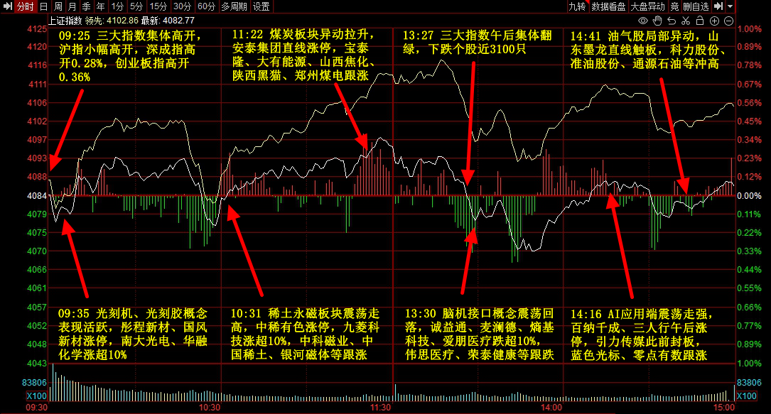 1、行情 指数今日迎来小幅盘整,市场炒作出现一定的小幅降温。 题材方面,光刻胶全天大涨,彤程新材一字板,国风新材、长青科技、华融化学(20CM)、芯源微(20CM)、恒坤新材(20CM)、高盟新材 (20CM)、南大光电(20CM)等纷纷涨停; 核聚变开盘后大涨,远东股份2连板,中国西电、弘讯科技、中国核建、国机重装、雪人集团先后涨停,英杰电气、理工光科、中泰股份、哈焊 华通等集体大涨; 航天板块局部走强,其中以蓝箭航天概念股为主,鲁信创投(一字)、金风科技2连板,通宇通讯涨停新高,和顺电气早盘20CM涨停(炸), 斯瑞新材、张江高科(光刻机消息刺激)午后大涨; 有色、稀土、煤炭等集体大涨,个股不再赘述; 此外,光伏、半导体、液冷等有局部强势表现,内存、脑机接口高开低走。 2、豆包汽车 截至收盘,沪指、深成指、创业板指分别收涨0.05%、0.06%、0.31%,市场近3200股下跌,2100余股上涨,两市成交量依旧维持在2.8万亿。 今日上午,豆包汽车消息突然迎来发酵。 四维图新连续大幅拉升,盘中一度冲击涨停板; 赛力斯水下迎来资金连续大盘,盘中拉升幅度一度超6%; 启明信息盘中也出现明显拉升,拉升幅度一度超 ...