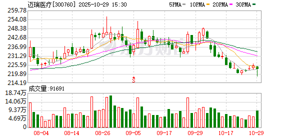 每经AI快讯,10月29日,迈瑞医疗(300760.SZ)公告称,公司第三季度营业收入90.91亿元,同比增长 1.53%;净利润25.01亿元,同比下降18.69%。2025年前三季度营业收入258.34亿元,同比下降12.38%; 净利润75.7亿元,同比下降28.83%。经营活动产生的现金流量净额较上年度同期减少34.32%,主要系报 告期内公司销售商品、提供劳务收到的现金减少所致。尽管国内体外诊断行业规模萎缩,但公司重点业 务市场占有率稳步提升,国际业务保持增长态势,其中欧洲市场同比增长超20%,微创外科业务增长超 过25%,重点产品超高端超声前三季度收入翻倍。公司持续加大研发投入,前三季度研发费用达26.86 亿元,占营收比重10.40%,并在生命信息与支持、医学影像、体外诊断等领域推出多项新产品。 (文章来源:每日经济新闻) ...