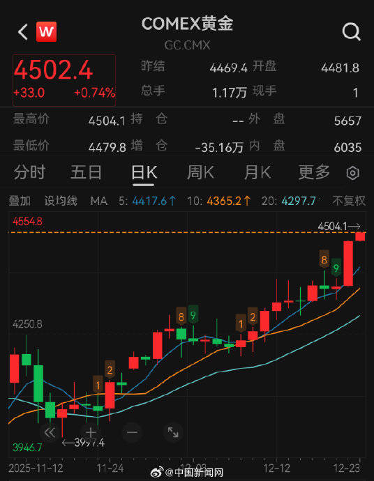 Core Dynamics and Data - Historical Breakthrough: On December 23, 2025, COMEX gold futures first broke $4500/oz, reaching a peak of $4555.1; London spot gold also surged to $4525.83/oz, with a year-to-date increase exceeding 70%, marking the largest annual gain since 1979 [2] - Consumer Transmission: Major brands like Chow Tai Fook and Chow Sang Sang saw a daily increase of 36 yuan in gold jewelry prices, with a reported price of 1411 yuan/gram on December 24, totaling a two-day increase of 44 yuan. The cost of 60 grams of wedding "three golds" skyrocketed from under 40,000 yuan at the beginning of the year to over 80,000 yuan, leading some couples to consider rentals or "gold-plated silver" alternatives [2] Driving Forces Behind the Surge - Monetary Easing Expectations: The Federal Reserve is expected to cut rates by 75 basis points cumulatively in 2025, with the market betting on further cuts in 2026. The decline in U.S. Treasury yields diminishes the dollar's attractiveness, while lower real interest rates reduce the cost of holding gold [3] - Surge in Safe-Haven Demand: - Geopolitical Risks: U.S. sanctions on Venezuelan oil tankers and tensions in the Middle East have heightened risk aversion [4] - De-dollarization: Central banks globally purchased a net 634 tons of gold in the first three quarters, with China increasing its gold reserves for 13 consecutive months, leading to a decrease in the dollar's share of foreign exchange reserves to 56.32% [4] - Technical Buying Pressure: The gold price broke through the resistance level of $4380 set in October, triggering algorithmic trading, with gold ETFs experiencing net inflows for five consecutive weeks [4] Market Divergence and Risk Alerts - Bullish Camp: Central bank gold purchases and an ongoing rate-cut cycle support a bullish outlook, with Goldman Sachs predicting $4900 and JPMorgan forecasting $5055 [5] - Cautious Camp: Concerns over short-term overbought conditions and policy fluctuations, with Citigroup warning of a pullback to $4280-$4300 and economist Guan Qingyou cautioning that rapid price increases may not be beneficial [5] - Historical Lessons: In October, gold prices twice touched $4380 before experiencing a single-day drop of nearly $200 (a 6.3% decline), with the current RSI indicating overbought conditions in the 74-80 range [5] Practical Advice for Ordinary Users - Consumer Pitfalls: - Wedding essentials should prioritize gold jewelry priced by weight in markets like Shenzhen's Shui Bei, avoiding brand premiums of around 30% [6] - Consider refurbishing old gold or opting for "gold-plated silver" alternatives, which are priced at only one-fifth of solid gold [6] - Investment Allocation: - Tools: Gold ETFs (with fees <0.5%) and bank gold savings should be preferred, avoiding high-leverage futures due to frequent liquidations at 80x leverage in October [7] - Strategy: Maintain positions at ≤10% of liquid assets, employing dollar-cost averaging to mitigate high-price risks and avoid chasing prices [7] Future Trend Core Contradictions - Upward Momentum: The erosion of the dollar's credit system is transforming gold from an "anti-inflation tool" to the "ultimate asset against sovereign credit risk," with Morgan Stanley predicting gold prices could challenge $7000-$8000 by 2030 [8] - Downward Risks: If the Federal Reserve's independence is restored or if global economic recovery exceeds expectations, a prolonged bear market for gold similar to the 1980-2000 period could re-emerge [8]