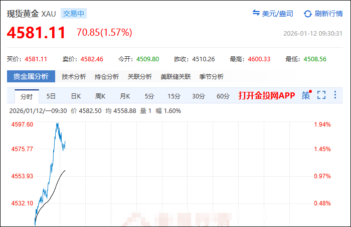 再创历史新高!国际金价突破4600美元/盎司