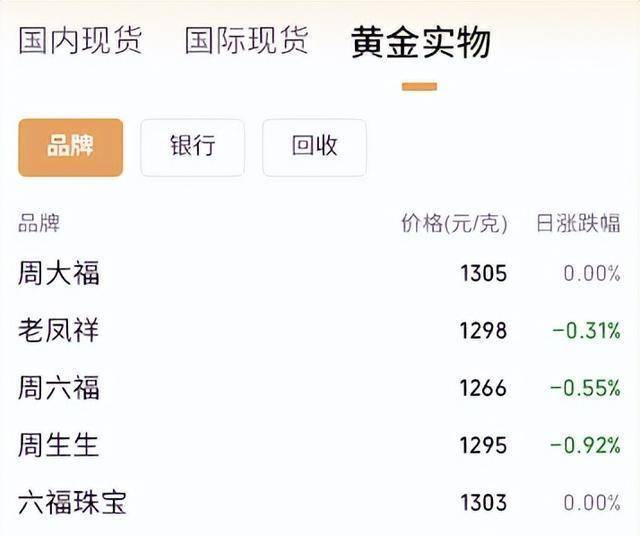 周生生、老庙、周大福、六福、老凤祥的足金首饰报价在11月21日前后出现小调整,有的下调12元,有的微幅下挫或持平,零售端的波动被细碎地 传递出去; 事情起因之一是美国劳工部在11月20日发布的滞后就业数据,显示9月失业率升至4.4%,9月非农就业增加11.9万人,远超预估,这个数据被市场当 作既能喂鹰派也能喂鸽派的"双刃剑"; 道明证券的分析师把这份报告说成让双方都能回到各自阵营的话,市场于是开始赌美联储的节奏,美元走强成为短期金价承压的直接因素; 同日COMEX报4044.9美元,差不多是那个节奏,先跌后稳,像是被人拉扯了一把; 国内市场也没逃过波及,11月21日收盘上海金Au99.99报924.44元,跌了0.59%,金店的价签也跟着动了; | 国内现货 | 国际现货 | 黄金实物 | | | --- | --- | --- | --- | | 品牌 | 银行 回收 | | | | 品牌 | | 价格(元/克) | 日涨跌幅 | | 周大福 | | 1305 | 0.00% | | 老凤祥 | | 1298 | -0.31% | | 周六福 | | 1266 | -0.55% | | 周生生 | | 12 ...