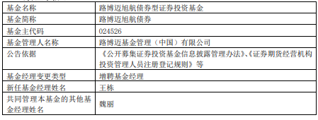 路博迈旭航债券增聘王栋