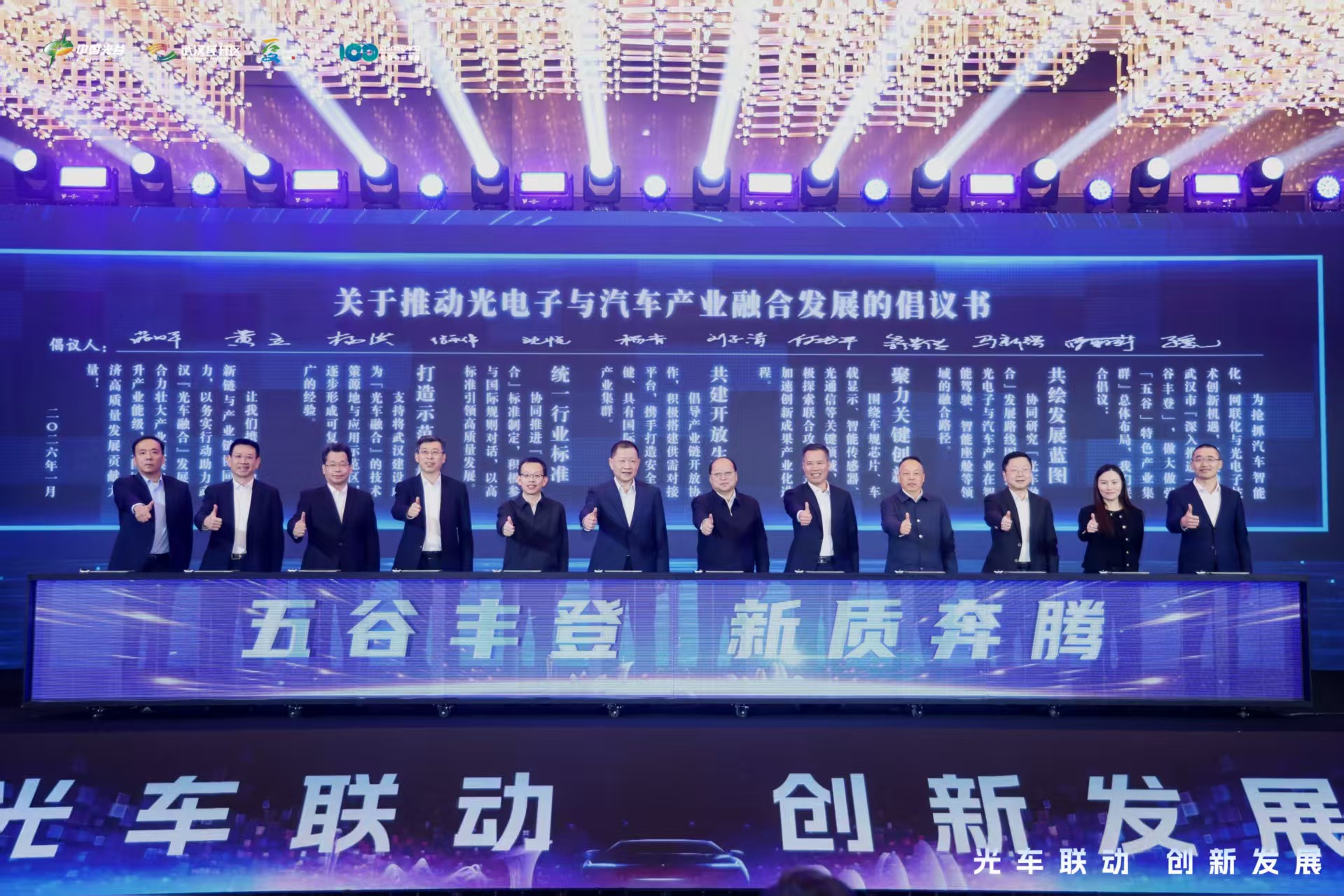 1月18日,一场关于"光"与"车"的深度对话在武汉展开。在光电子与汽车产业融合发展 创新大会上,来自东湖高新区、武汉经开区、江夏区的政府代表,东风汽车、华为、中国信 科、华工科技、高德红外等产业领军企业,以及权威行业机构,共同发起"光车融合"倡议。 倡议铿锵有力:共绘发展蓝图、聚力关键创新、共建开放生态、统一行业标准、打造示 范标杆。这不仅是武汉推动光电子与汽车两大支柱产业深度融合的宣言,更是其抢抓汽车智 能化、网联化浪潮,落子"五谷丰登"产业棋局的关键一步。 "通信领域曾经历'光进铜退',这个过程同样可以发生在车上。"武汉二进制半导体有限 公司董事长杨志勇道出另一项雄心:推动"光纤上车"。随着智能网联汽车数据量爆炸式增 当前,汽车正从纯粹的交通工具向智能移动终端加速演变。这场变革的背后,是"光芯 屏端网"技术的全面渗透。智能驾驶的"眼睛"、智能座舱的"屏幕"、车路协同的"神经",无 一不依赖光电子技术的支撑。武汉,这座同时坐拥"中国光谷""中国车谷"的工业重镇,正试 图将两大领域的优势禀赋拧成一股绳,探索一场深刻的产业融合实验。 强强联合,两大支柱产业的必然交汇 "汽车行业是典型的融合化发展的标志性产业。" ...