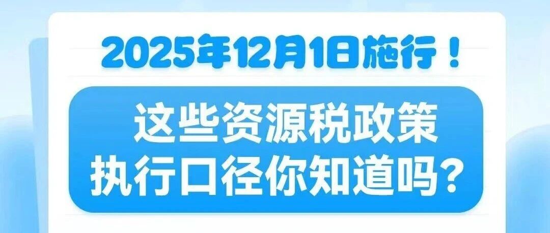 《 人民日报 》( 2025年12月01日 18 版) (责编:岳弘彬、牛镛) 关注公众号:人民网财经 本报电 近日,财政部、国家税务总局联合发布公告,明确了资源税有关政策执行口径,自2025年12月1 日起施行。公告主要从9个方面明确了对资源税有关政策和征管问题的执行口径,包括不缴纳资源税的 情形、部分应税产品的适用税目和征税对象、特殊情形下应税产品的计税依据、关联交易价格明显偏低 的正当理由、自用连续生产应税产品定义、减免税管理规定和计算方法、不同结算方式下资源税的纳税 义务发生时间等。在资源税征税对象方面,公告对实际征管中征纳双方争议较为集中的煤炭原矿、选矿 产品、盐类选矿产品和轻稀土、中重稀土等重要战略资源原矿、选矿产品的概念定义,作了进一步的明 确和细化。明确资源税有关政策执行口径,有利于进一步消除地区间资源税法的执行差异,避免因政策 理解偏差导致的征管争议,为税务部门和纳税人提供了更为清晰的操作指引。 (王 观) ...