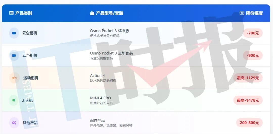 节后首个工作日,让消费者最"破防"的是刚买的大疆降价了。 10月9日,大疆宣布开启"双十一"预售活动,其在京东、天猫、淘宝等主流电商平台的官方旗舰店,以及线下实体门店同步上线降价活动,运动相机、消 费级无人机、手持稳定器等全品类产品集体贴上"直降"标签,力度堪称年内最大。 其中,最受关注的明星产品云台相机Osmo Pocket 3,自上市以来价格始终坚挺。此次迎来"首降",最高直降900元。这一"跳水"式降价,成为点燃消费者 情绪的核心导火索。不少消费者感到被"背刺",在社交平台上发起讨论,分享退差价维权经验。 尽管大疆回应:"此次价格调整是'双十一'的常规促销,线上线下统一退换货有难度,将协同优化相关服务与沟通机制。"不过,从行业视角看,这更像是 大疆对影石持续攻势的"应战"之举。 如今,在运动相机、全景相机、无人机等核心赛道,大疆与影石进入各自占据优势领域,让这场行业较量愈发激烈。 7天价保,大疆打响"价格战" 《IT时报》记者在电商平台观察发现,云台相机Osmo Pocket 3标准版降价700元,全能套装降价900元;运动相机Action 4最高降价1129元;MINI 4 PRO无 人机最高降价14 ...