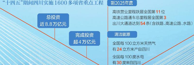□四川日报全媒体记者 张守帅 刚刚过去的2025年末,四川的超级工程扎堆"面世"。 仅需 0.006秒,金沙江上游的清洁电能就能跨越1900公里,"闪送"至华东地区的千家万户。2025年12月18日,金上 —湖北±800千伏特高压直流输电工程建成投运。这条出川能源大动脉建设历时近3年,海拔4000米以上线路长达 248公里,高约65米、重约85吨的铁塔站上海拔4797.9米的巴塘县色烔玛山,创下世界最高海拔特高压工程施工纪 录。 2025年12月31日24时,乐山至西昌高速公路马边至昭觉段通车。这是首条穿越大小凉山腹地的"云端通途",经过 横断山脉东部的高山峡谷,桥隧比高达82%,最长隧道15.3公里。为了破解高海拔路段冬季冰雪之困,项目在西 南地区率先用上了"地暖"(智能化环路热管融雪系统)。 世界规模最大的地下厂房洞室群(白鹤滩水电站)、世界首座公路和高速铁路平层布置的大桥(宜宾临港长江公 铁大桥)、国内首座将TBM应用于平行导洞施工的隧道(大凉山1号隧道)……巴山蜀水间,一个个超级工程拔 地而起,以无畏之姿挑战工程极限。 来自省发展改革委的数据显示,"十四五"期间,四川实施1600多项省重点工程,总投资 ...