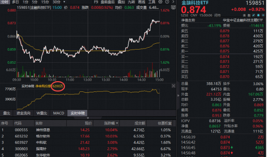 央行会议引爆,金融科技强势冲高!百亿金融科技ETF(159851)盘中猛拉4.8%,获资金实时净申购3.69亿份!