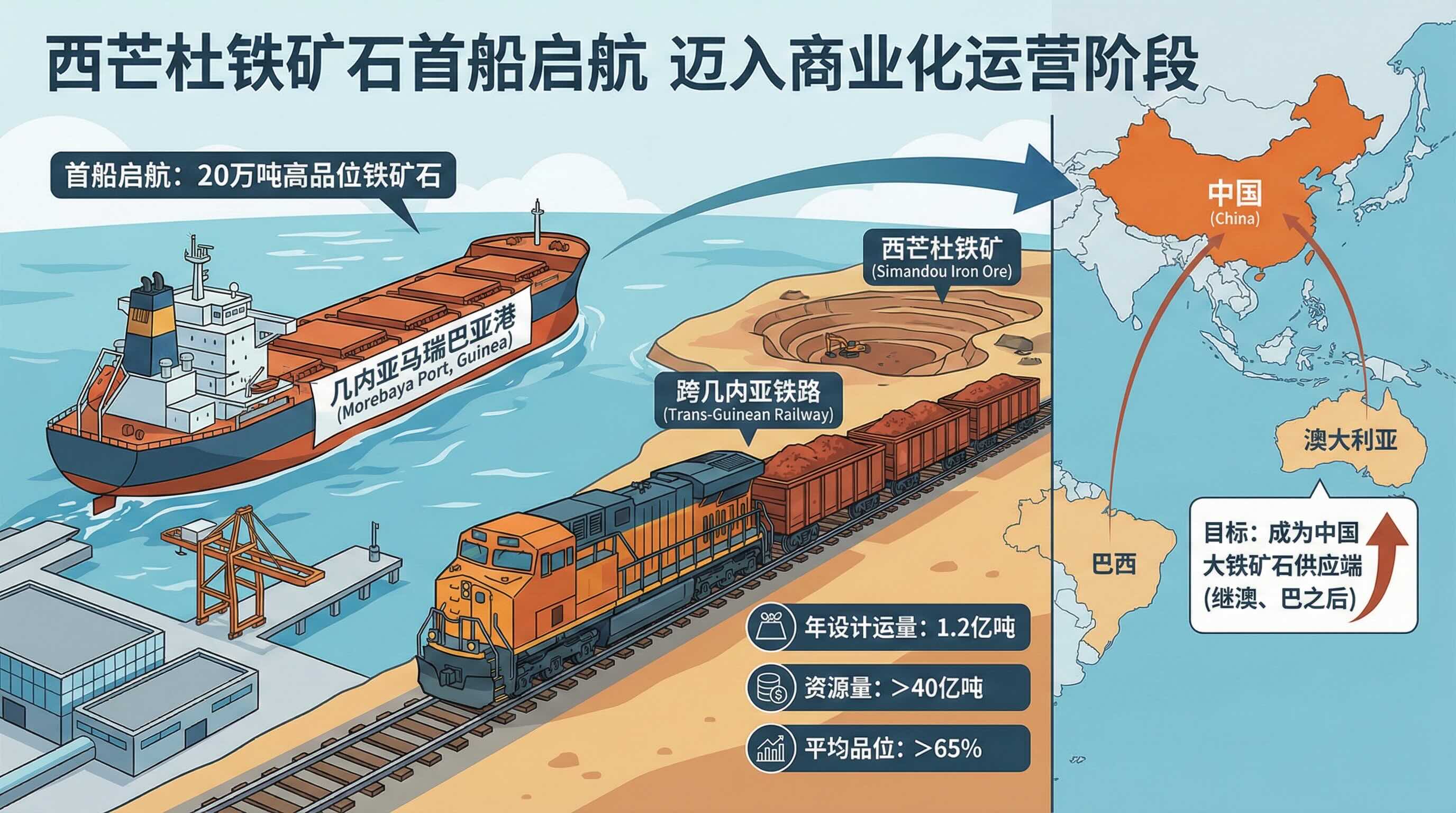 西芒杜20万吨高品位铁矿石首船启航 迈入商业化运营阶段