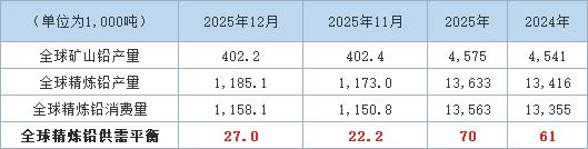 ILZSG:2025年全球铅市为供应过剩7.0万吨