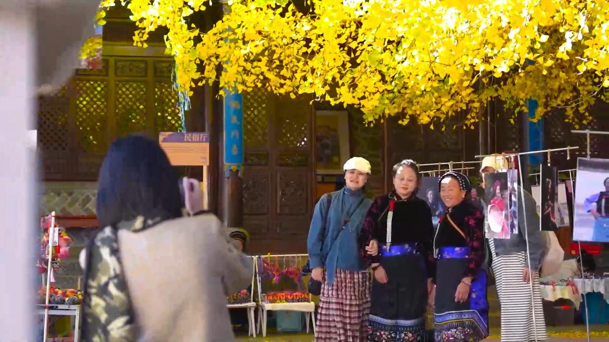 银杏之外,白族传统手工、古建筑和田园风光也让游客流连忘返。 英国游客葛飞文说:"我去了中国很多地方,但是我特别喜欢云南和凤羽,因为这里有古建筑,保护得特别好,是特别安静的地方。这个地方我觉得住得特 别舒服,可以长时间住,去了一次不够,肯定会再来。" 作者:何春好 李义勇 赵丽娟 11月初至12月底为凤羽银杏季,平日客流300至500人次,周末高峰可达1200人次,全季预计接待3万多人次。在政府引导和免费开放政策支持下,当地餐饮 和民宿受益,形成自然吸引、文化留存和经济转化的良性循环,为古镇发展注入新动力。 01:59 眼下,中国历史文化名镇大理凤羽的300多年古银杏进入最佳观赏期,金黄叶片与古色古香的凤翔书院交相辉映,吸引各地游客前来打卡。 贵州游客白明薇说:"看到这个银杏还是挺震撼的,因为在我们那里还没有这么大的银杏树,这个季节就是来赏银杏的,而且大理的天这么好、这么蓝,就 特别高兴。" ...