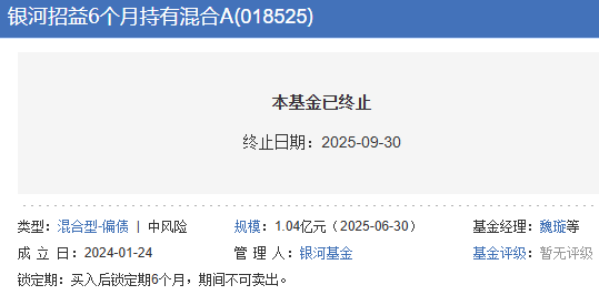 银河招益6个月持有混合基金清盘 单一机构持有份额占比超99%
