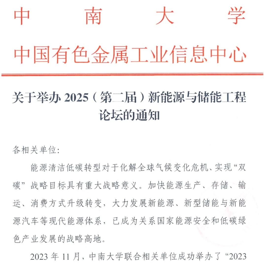 为深入推动新能源与储能工程领域的学科、人才、科技与产业的高质量协同发展,中 国有色金属工业信息中心等将于 2025 年 10 月 24 日-26 日在湖南长沙召开"2025(第二 届)新能源与储能工程论坛",以"学科人才支撑,产研融通发展,能源低碳转型"为主题,针 对新能源与储能工程领域的热点问题、科技前沿、产业发展与学科建设等展开交流。 论坛包括 8 个学术分论坛、1 个产业论坛、1 个学科建设分论坛和 1 个人才分论 坛。 学术分论坛包括锂离子电池、锂金属电池与固态电池、钠离子电池及新体系二次电池、 太阳电池、氢能与催化、新能源系统与动力工程、能源金属资源提取与循环等方向,将汇聚 900+新能源与储能工程领域科技领军人才(其中院士十余名、国家杰青/长江学者/万人领 军等人才近百名)。产业论坛涵盖新能源材料、电池电芯、储能系统、新型电力系统等产业 方向,报告企业包括格林美、紫金新能源、弗迪电池、国联研究院、中车株洲所、金风零碳 等龙头企业,将链接 300+龙头企业代表、20+顶尖投资人,并搭建产业链上下游各环节 及"产学研用金"各界的交流合作平台。 诚邀新能源及其材料产业上下游企业协办和参展参会交流! 源汽 ...