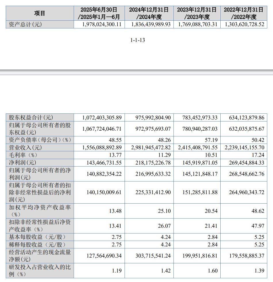 Core Viewpoint - Jiangsu Suxun New Materials Technology Co., Ltd. has completed its listing guidance work, with Open Source Securities as the guiding institution, indicating the company's readiness for public offering and growth potential in the new materials sector [2] Group 1: Company Overview - Suxun New Materials was established in April 2009 and focuses on the research, production, and sales of various types of steel thin plates and special steel wires [2] - The company is recognized as a high-tech enterprise and a "little giant" enterprise by the Ministry of Industry and Information Technology, specializing in products such as chrome-plated thin plates, tin-plated thin plates, stainless steel thin plates, and food-grade thermal laminated iron [2] - Suxun New Materials is the first domestic manufacturer to provide food-grade stainless steel packaging materials on a large scale, maintaining the highest market share in chrome-plated thin steel belt products from 2020 to 2024 [2] Group 2: Financial Performance - In the first half of 2025, Suxun New Materials achieved operating revenue of 1.554 billion yuan, representing a year-on-year increase of 8.24% [3][4] - The net profit attributable to the parent company was 141 million yuan, showing a significant growth of 35.63% compared to the previous year [3][4] - As of June 30, 2025, the company's total assets amounted to 1.981 billion yuan, with shareholders' equity of 1.068 billion yuan and a debt-to-asset ratio of 45.86% [3] Group 3: Profitability Metrics - The gross profit margin for the reporting period was 13.80%, an increase from 10.14% in the previous year [4] - The weighted average return on equity was 13.51%, up from 12.87% year-on-year [4] - Basic earnings per share reached 2.76 yuan, reflecting a 35.63% increase compared to the same period last year [4] Group 4: Shareholding Structure - Li Longlai, the chairman and general manager, holds 20.0396 million shares, accounting for 39.19% of the total shares [3] - Li Kang, the vice general manager and Li Longlai's son, holds 11.725 million shares, representing 22.93% of the total shares [3] - Huang Xueya, Li Longlai's wife and a board member, holds 4.777 million shares, making up 9.34% of the total shares [3]