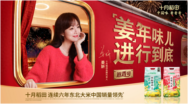 来源:环球网 近日,十月稻田官宣实力派演员姜妍成为品牌代言人,正式拉开2026马年年货节的帷幕。此次合作以 "姜年味儿进行到底" 为核心主题,并非简单的流量绑定,而是从精神内核、生活场景到情感联结的深 度契合,更以"好米"为切口,回应"年味淡了"的社会情绪,让"中国味"回到新春的烟火里,让"香香 香"氤氲着年夜饭的欢声笑语。 在十月稻田发布的官方主视觉海报中,核心场景聚焦 "奔赴团圆":姜妍身着红色喜庆穿搭,乘坐印着 "返香号" 字样的高铁奔赴家的方向,眼神满是对相聚的期盼。姜妍温暖从容的姿态与团圆主题相得益 彰,传递 "好味在路上,好米候相聚" 的主张,让一碗好饭成为承载牵挂与温情的纽带。品牌同步释出 的姜妍专属 ID 直抵人心:"岁岁年年,总有一种味道让你准时回家,一桌丰盛的家宴从一碗好饭开始, 以一年一季的米香守护一年一度的团圆……" 这与 "返香号" 场景深度呼应,将大米与 "归家"、"团圆" 牢牢绑定,让品牌理念在情感共鸣中自然传递。 烟火相契:生活态度与品质坚守的双向共鸣 姜妍与十月稻田的核心契合,在于对 "生活本真" 的坚守与 "长期主义" 的共同践行。作为深耕演艺领域 多年的实力派演员,从生活 ...