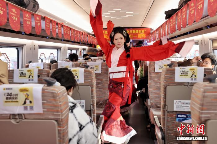 1月5日10时45分,西安北站2站台暖意融融,G828次陕港高铁静候启程。身着汉服的工作人员与西 九龙班组乘务员并肩而立,以标准汉礼迎接八方旅客。为庆祝陕港高铁开通一周年,中国铁路西安局集 团有限公司(以下简称"西安铁路局")联合汉景帝阳陵博物院,开展"高铁流动博物馆"主题活动,让高 铁列车成为流动的文化传播载体,推动秦风汉韵与港埠风华在飞驰的列车上交融。 西安客运段动车三队党支部书记汪洋表示:"陕港高铁不仅是交通通道,还是文化通道。我们将持 续擦亮'高铁流动博物馆'品牌,让每一次出行都成为一场有温度、有内涵的文化之旅。" (记者:杨 光) "没想到坐高铁还能体验汉礼迎宾。孩子特别喜欢这种沉浸式氛围。"带孩子出游的童女士难掩兴 奋,话语间满是惊喜。 陕港高铁开通一年来,西安铁路局西安客运段联合地方文旅部门在陕港高铁上打造"高铁流动博物 馆"。活动期间,车厢布置更显温情,车窗上整齐张贴着汉景帝阳陵博物院文物介绍及二维码,让历史 文化触手可及;餐车吧台处,汉景帝阳陵博物院"镇馆之宝"——塑衣式彩绘拱手跽坐女俑"姗姗"复制 品、古朴典雅的"千秋万岁"瓦当及精美文创有序陈列,引得旅客纷纷拍照打卡。 2025年1月5日 ...