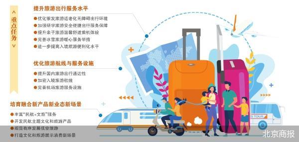《行动方案》明确,到2027年,旅游出行服务水平显著提高,国际国内旅游航线覆盖更广,融合产品和 场景更加丰富多元,文化和旅游与民航业实现更深层次、更大范围、更高质量的融合,形成需求牵引供 给、供给创造需求的良性发展格局。 提高游客出行便利化舒适化水平 聚焦提升旅游出行服务水平,《行动方案》重点对银发旅游、研学旅游、亲子旅游、冰雪旅游和入境旅 游等五类出行群体的特殊需求,提出针对性服务措施,进一步提高游客出行便利化、舒适化水平。 《行动方案》明确,指导航空公司和机场升级适老化服务举措,鼓励推出老年旅客陪伴、休息区、机上 老年餐食、敬老候机座位等服务。 鼓励有条件的航空公司和机场提供团体快速核验通行服务,鼓励机场与文化和旅游企业优化地面接驳资 源,为研学团队提供便利。 鼓励航空公司提供家庭旅客选座、儿童餐食预订、机上益智玩具、儿童读物、儿童影音内容等服务。鼓 励在航站楼设立儿童游乐区、亲子互动体验设施等。支持航空公司、机场针对多孩家庭出行特点提供定 制化服务。 ● 本报记者 杨梓岩 12月3日,中国证券报记者从文化和旅游部获悉,文化和旅游部、中国民航局日前联合印发《文化和旅 游与民航业融合发展行动方案》。 鼓励冰 ...
