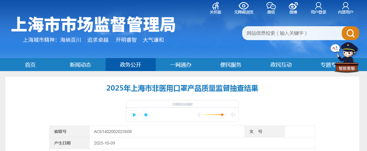 2025年上海市非医用口罩产品质量监督抽查结果公布