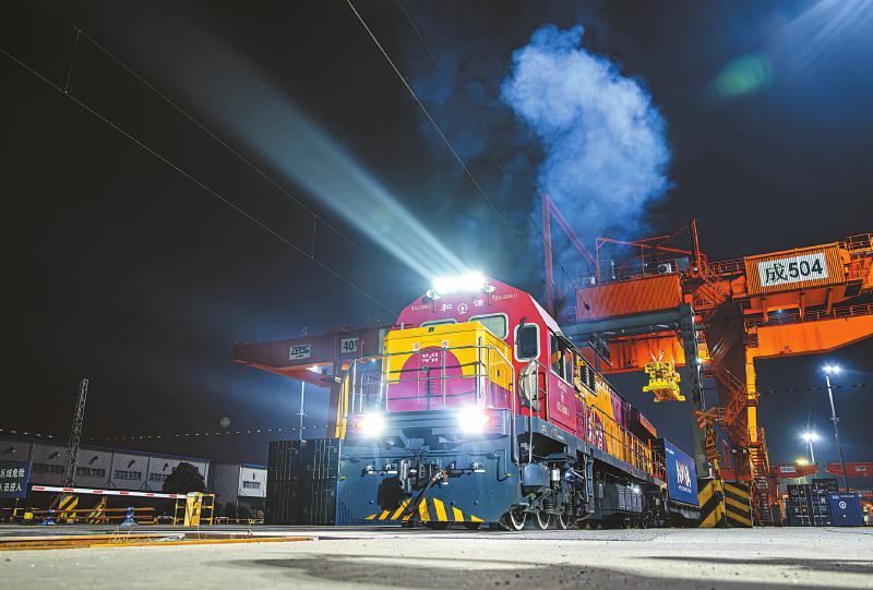 Group 1 - The article highlights the successful operation of the Chengdu International Railway Port, which launched its first China-Europe freight train of the Year of the Horse on February 17, carrying 55 containers, with 60% of the cargo being local products from Sichuan [2] - The China-Europe Railway Express (Chengdu-Chongqing) has maintained the highest operational volume in the country for five consecutive years, with over 5,000 trains dispatched last year, covering more than 130 cities across Eurasia [2] - The efficiency of the logistics process is emphasized, with a five-minute time frame for customs clearance and automated systems reducing the need for manual procedures, significantly improving operational efficiency [2][3] Group 2 - The loading process of containers onto the train is highly efficient, taking approximately 8 minutes to load 15 containers using four gantry cranes, with the entire loading operation completed in about 30 minutes for all 55 containers [3] - The article notes that the Chengdu Railway Port has implemented 24/7 customs clearance services, ensuring smooth operations even during the Spring Festival, with measures like "advance declaration" and "paperless customs clearance" in place [2] - The article also mentions the importance of the Chengdu International Railway Port in stabilizing global supply chains, acting as a "steel camel team" for international logistics [2]