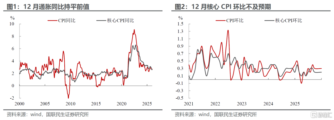 宏观动态报告 同比温和、环比偏强 -12 月美国 CPI 点评 2026 年 1 月 14 日 分析师 张迪 ☎: 010-8092-7737 网: zhangdi_yj@chinastock.com.cn 分析师登记编码:S0130524060001 研究助理:吴佳文 风险提示 1. 服务价格回落不及预期的风险 www.chinastock.com.cn 证券研究报告 请务必阅读正文最后的中国银河证券股份有限公司免责声明 ● 通胀整体符合预期,但环比结构偏强:美国 2025 年 12 月未季调 CPI 同比升 2.7%,与预期一致,前值为 2.7%;季调后 CPI 环比升 0.3%,符合预期。未季调 核心 CPI 同比升 2.6%,略低于预期 2.7%,与前值持平;季调后核心 CPI 环比升 0.2%,低于预期 0.3%。从同比角度看变化有限,通胀已经脱离快速回落阶段; 从环比看,食品与服务项带来一定上行压力,通胀呈现黏性特征。 ● 食品价格广泛走强,是当月通胀的主要推动项:食品环比上涨 0.7%,对整体通 胀贡献约 0.10 个百分点,是本月增幅的主要来源。居家食品与外食均升 0.7%, 其中谷物烘焙升 ...