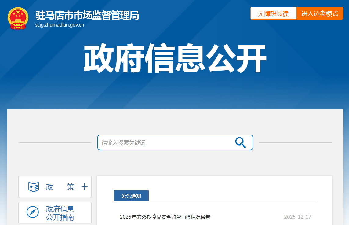 河南省驻马店市市场监督管理局2025年第35期食品安全监督抽检情况通告