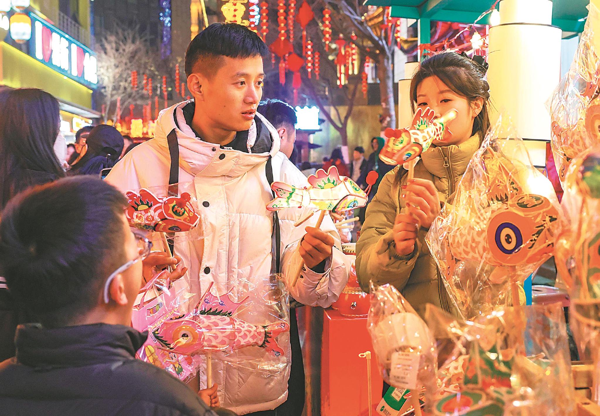 (来源:安徽新闻网) 转自:安徽新闻网 缤纷活动 春节假期,合肥罍街迎来如潮人流,市民与游客汇聚于此,在浓浓年味中欢度新春。街区围绕"跟着春晚游罍街"主题,推出系列精彩活动,开启新春文旅消 费热潮。本报记者 王兰兰 摄 丰富居民假期生活 "打算买一些海鲜、蔬菜还有零食,招待亲友。"2月21日上午,在合肥盒马鲜生瑶海天地店,市民刘女士和家人正在挑选蔬菜。店里张灯结彩,人流如织, 充满着新春氛围。店长黄俊告诉记者,春节假期,店里客流量较平时增长了三成左右,三文鱼、香辣蟹等销量攀高,"为此,我们不仅加大了备货量,还延 长了营业时间,全力保障春节供应"。 春节假期,消费市场呈现出一派繁荣景象。从核心商圈到热门景区,人潮如织;从餐饮堂食到百货零售,购销两旺,处处洋溢着浓浓的年味。 为丰富居民假期生活,我省围绕"好吃、好住、好行、好游、好购、好玩"六个方面,组织开展了形式多样的促消费活动,为节日市场注入源源不断的活力。 合肥在骆岗公园盛大举办"乐购新春·福满超级皖"活动,围绕"吃、玩、赛、购、娱"五大板块,举办美食争霸赛、国潮年货展、非遗民俗巡游等沉浸式活 动;芜湖举办"国潮焕新—非遗好礼进商圈"活动;滁州举办"我在琅琊 ...