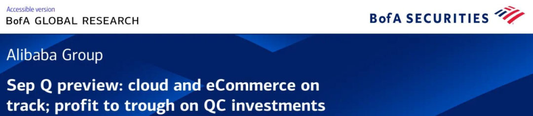尽管近期股价有所回落,但这并没有影响美银继续发布看涨阿里的研报。 10月9日,美银发布阿里巴巴专项研究报告,重申对其买入评级,目标价维持200美元(对应港元195元)。 报告预测,阿里2026财年第二季度业务增长符合预期、利润短期触底,云业务与电商变现率双升提供增长动能,尽管即时零售投入扩大会导致阶段性盈利 下降,但长期看人工智能与全渠道布局仍具核心竞争力。 01 增长主线清晰 电商业务稳中有进,即时零售拉动流量增量 电商板块方面,客户管理收入预计维持10%的稳健增长,核心驱动力来自两点:一是"全站推"AI营销工具adoption率持续提升,帮助商家精准触达用户, 推动广告变现效率改善;二是淘宝即时零售贡献增量流量,据QuestMobile数据,7-9月淘宝日活跃用户同比增长13%-19%,用户粘性与转化率逐步优化。 美银预测,随着即时零售用户习惯养成,其对CMR的正向拉动将从短期2-3个百分点,逐步扩大至长期5-10个百分点;同时,业务协同效应有望降低销售 及营销费用,剔除即时零售后,中国电商业务利润率预计在2028财年实现明显扩张。 02 利润短期触底 报告指出,9月季度将是阿里巴巴集团利润的阶段性底部, ...