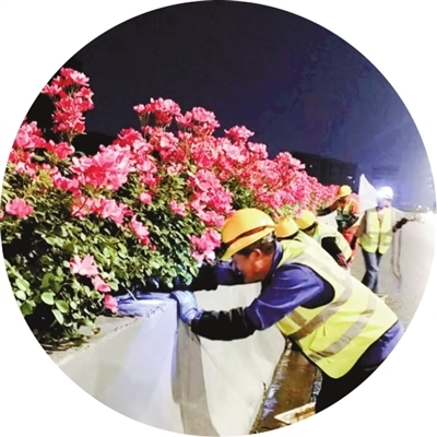 植株灌溉浇水方面,城管养护人员启用智慧灌溉系统,通过控制器、传感器、摄像头等设备采集信 息,利用智能系统编制灌溉方案、实施灌溉操作,避免过量灌溉、灌水不足等现象;晚上10:00至次日 凌晨5:00,定时对月季集中灌溉;调试温度、湿度,并使用土壤肥沃监测器全方位监控植株生长环境; 安排人员对高架滴件、水泵、水管进行检查,春季以来已维修桥上水管漏水418处、更换水泵6台、更换 电磁阀8套、更换滴件12500套。 病虫害防治方面,近期气温上升、雨水增多,绿化病虫害滋生。城管养护部门出动多辆水车对全线 绿化进行机械化打药,确保每5天全覆盖1次。按照园林精细化管护标准,加大高架绿化植物病虫害防控 力度,做到及时发现、及时防治,保障绿化苗木生长及绿化景观效果。 施肥灌根方面,根据植物阶段性生长需求,城管养护部门从3月开始,每15天对高架全线月季施复 合肥;4月开始,每周安排4辆水车全线全覆盖灌根1次。同时,通过调整灌根肥料、增加磷钾肥,为植 株提供更多养分和所需微量元素,确保花体更旺、花期更长。 除草护绿方面,城管养护人员在夜间高架全封闭时段,分段同步对两侧月季开展除草护绿工作;加 大高架绿化动态巡逻频次,对发现缺水、长 ...