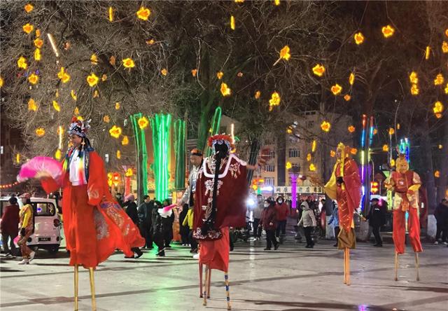 Core Viewpoint - The article highlights a traditional high-stilt performance in Chifeng City, Inner Mongolia, showcasing cultural heritage and festive celebrations during the Lunar New Year [1]. Group 1: Cultural Significance - The high-stilt performance, known as "Gaoqiao Yangge," is recognized as a national intangible cultural heritage representative project [8]. - This folk dance has a long history, originating from ancient theatrical performances, with stone carvings depicting stilt walking dating back to the Northern Wei Dynasty [8]. Group 2: Performance Details - Performers dressed as characters from Chinese mythology, such as Sun Wukong and Tang Seng, engage in lively performances accompanied by traditional drumming [1][12]. - The number of performers in a stilt dance troupe can range from several to dozens, with costumes often resembling those from traditional operas [8]. Group 3: Community Engagement - Citizens actively participated in the festivities, joining the stilt team in traditional dances, enhancing community spirit during the New Year celebrations [10].