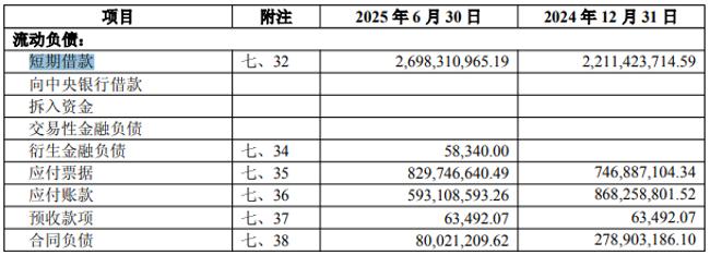 △图片来源:天马科技2025年半年度报告 天马科技财报数据显示,经过2025年上半年的采购加码,其日本鳗和美洲鳗投苗量和存池量均位居全球第一。但产能疯狂扩张的背面,是37亿的短债缺口 (包含27亿的短期借款以及10亿的"一年内到期的非流动负债")和远超行业水平的资产负债率。 就鳗鱼的特性看,大肆囤苗的行为本身不算冒进,但具体到天马科技的业务结构、现金流和负债情况,就让此举多了些不确定的意味。 坐上全球鳗鱼存池量的头把交椅,代价是什么? 对于天马科技而言,答案或许就写在那张高达27亿元的短期借款表上。 | 项目 | 附注 | 2025年6月30日 | 2024年12月31日 | | --- | --- | --- | --- | | 流动负债: | | | | | 短期借款 | 七、32 | 2.698.310.965.19 | 2.211.423.714.59 | | 向中央银行借款 | | | | | 拆入资金 | | | | | 交易性金融负债 | | | | | 衍生金融负债 | 七、34 | 58,340.00 | | | 应付票据 | 七、35 | 829,746,640.49 | 746,887, ...