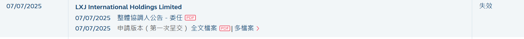 智通财经APP获悉,LXJ International Holdings Limited(简称:老乡鸡)于2025年7月7日所递交的港股招股书满6个月,于2026年1月7日失效,递表时中金公司 和海通国际为其联席保荐人。 据此前招股书,老乡鸡是中国最大的中式快餐店(QSR)品牌。经过20余年的改进和创新,打造了以鸡汤及鸡类菜品为核心的家常菜单,深受顾客喜爱。根据 灼识咨询的资料,以交易总额计,该公司于2024年以0.9%的市场占有率在中国中式快餐行业位列第一;以交易总额计,于2024年以0.5%的市场占有率在中 国快餐行业中排名第八。截至2025年4月30日,老乡鸡在中国58个城市拥有1,564家门店,包括911家直营店和653家加盟店,覆盖9个省。 | | 07/07/2025 整體協調人公告 - 委任 [四 | | --- | --- | | 07/07/2025 | LXJ International Holdings Limited 07/07/2025 申請版本(第一次呈交) 全文檔案 [四] 多檔案 | ...