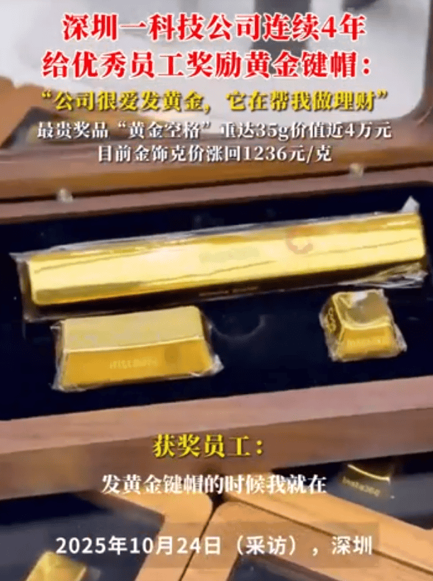 深圳一公司连续4年给优秀员工奖励黄金,最贵奖品“黄金空格”重达35g,价值近4万元