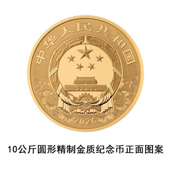 记者11月18日从中国人民银行获悉,中国人民银行定于11月26日发行2026中国丙午(马)年贵金属纪念币一套。该套贵金属纪念币共11枚, 其中金质纪念币6枚,银质纪念币4枚,铂质纪念币1枚,均为中华人民共和国法定货币。 该套贵金属纪念币正面图案均为中华人民共和国国徽,衬以中国传统吉祥纹饰,并刊国名、年号。背面图案共11幅,均刊"丙午"字样及面 额。 其中,10公斤圆形金质纪念币背面图案为群马奔腾造型,衬以祥云、山、水纹组合设计,含纯金10公斤,最大发行量18枚。 1公斤梅花形金质纪念币背面图案为奔马造型,衬以山、祥云组合设计,含纯金1公斤,最大发行量118枚。 500克圆形金质纪念币背面图案为装饰马头造型,衬以祥云组合设计,含纯金500克,最大发行量500枚。 150克圆形金质纪念币背面图案为母子马造型,衬以山、草地、云组合设计,含纯金150克,最大发行量1000枚。 15克梅花形金质纪念币背面图案为奔马剪影造型,含纯金15克,最大发行量8000枚。 3克圆形金质纪念币背面图案为装饰马造型,衬以祥云组合设计,含纯金3克,最大发行量120000枚。 150克圆形银质纪念币背面图案为奔马造型,衬以山水组合设计,含 ...