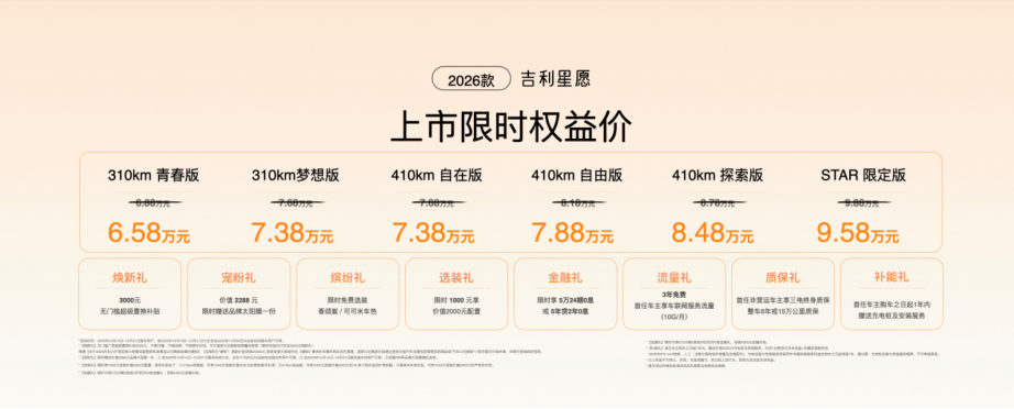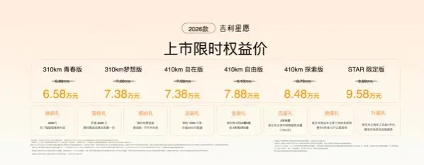 6.58万元起售,2026款吉利星愿上市