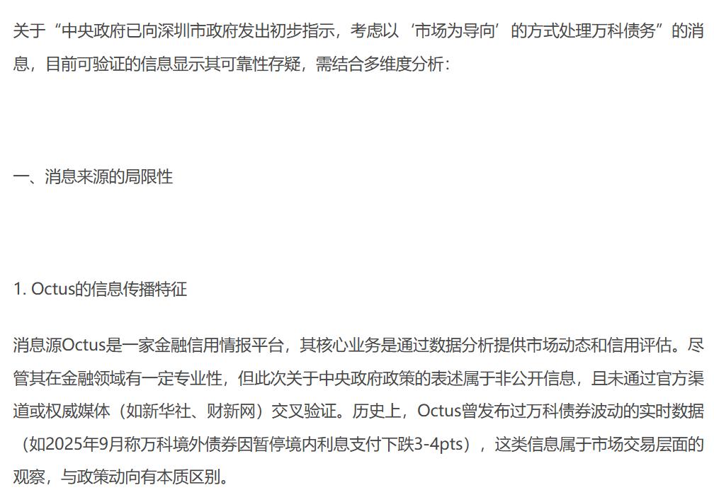如果万科暴雷,将会再次制造一个下拉整个地产行业企业信用的标志性事件,这是绝大多数地产人不愿意看到的。 这则消息目前暂时无法验证真伪,但引发了万科债券在市场上的剧烈波动。"22万科02""21万科04""23万科01""21万科06"等多只债券,因跌幅 较大而临时停牌。 但万科确确实实已经站在了债务重组的边缘。 01 本周,一个消息在业内流传:"中央政府已向深圳市政府发出初步指示,考虑以'市场为导向'的方式处理万科债务"。 图源:东方财富网 02 在此之前,大股东深铁的态度也有微妙的变化。 11月2日晚,万科发布了一个公告《关于深铁集团向公司提供股东借款并由公司提供担保暨日常关联交易公告》。 公告提到"万科企业股份有限公司于2025年11月2日与第一大股东深圳市地铁集团有限公司签署《关于股东借款及资产担保的框架协议》"。这个 协议的核心有两点: 一是约定了万科向大股东深铁集团借款的最高额度,以及借款、还款规则;二是提高了对万科借款的抵质押担保要求。 也就是说,深铁集团不再向万科提供"无限弹药"了,接下来一切照章办事。这是一个非常明显且巨大的改变。 而且,这则消息刚刚传开不久,万科就在上清所发布公告称,将召开债权 ...