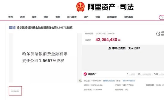 哈银消金:4672万元股权遇冷火速折价二拍,新帅上任50天或重启自营?