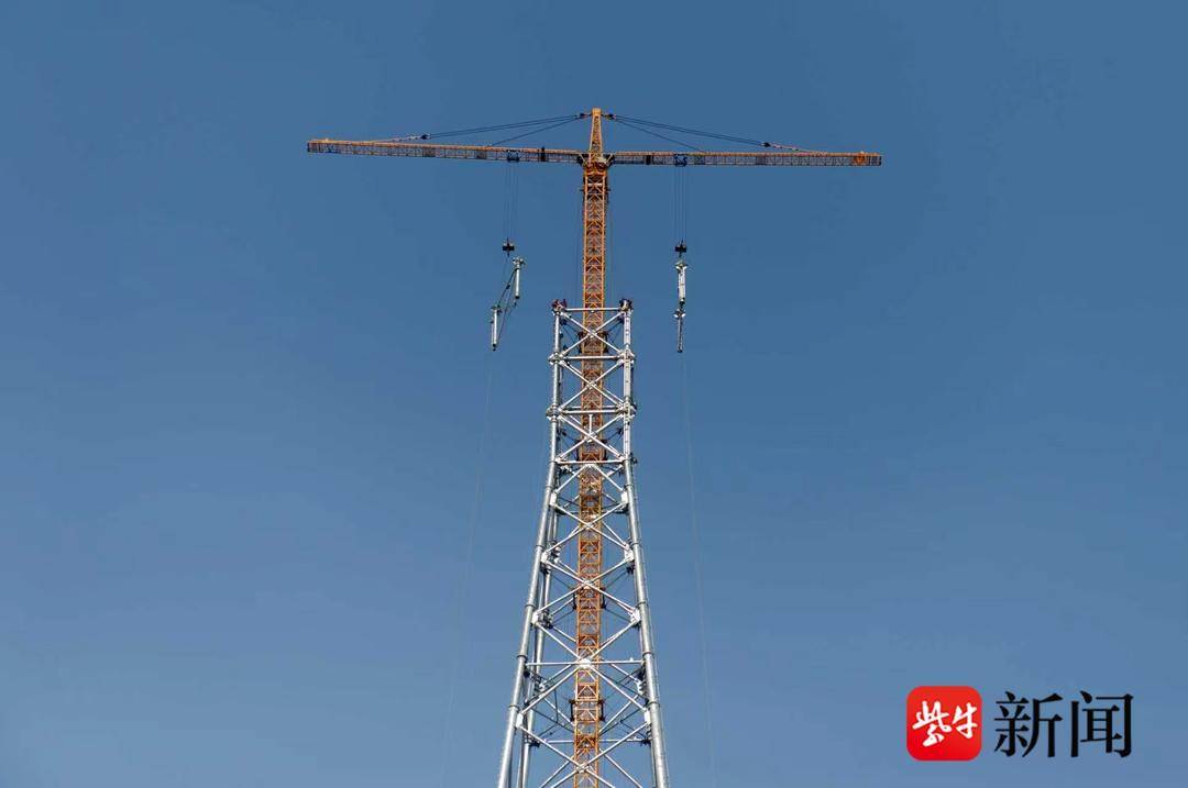 江苏两座跨淮河最高输电铁塔在盐城封顶
