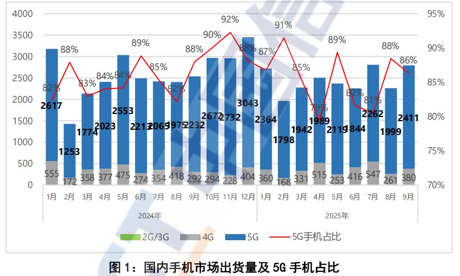 权威发布:2025年9月国内市场手机出货量2793.1万部,其中5G手机占比86.3%