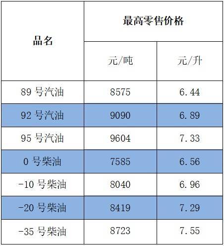 本市汽、柴油最高零售价格自2025年11月24日24时起,每吨分别降低70元和65元。 根据国家发展改革委国内成品油价格调整要求,按照成品油价格形成机制,本市汽、柴油最高零售价格 自2025年11月24日24时起,每吨分别降低70元和65元。 其中—— 89号汽油由每升6.5元调整为6.44元,降低0.06元; 92号汽油由每升6.94元调整为6.89元,降低0.05元; 95号汽油由每升7.39元调整为7.33元,降低0.06元; 0号柴油由每升6.62元调整为6.56元,降低0.06元。 具体价格见下表—— 自2025年11月24日24时起执行 | 品名 | 最高零售价格 | | | --- | --- | --- | | | 元/吨 | 元/升 | | 89 号汽油 | 8575 | 6.44 | | 92 号汽油 | 9090 | 6. 89 | | 95 号汽油 | 9604 | 7.33 | | 0 号柴油 | 7585 | 6.56 | | -10 号柴油 | 8040 | 6. 96 | | -20 号柴油 | 8419 | 7.29 | | -35 号柴油 | 8723 | 7.55 | 转 ...
