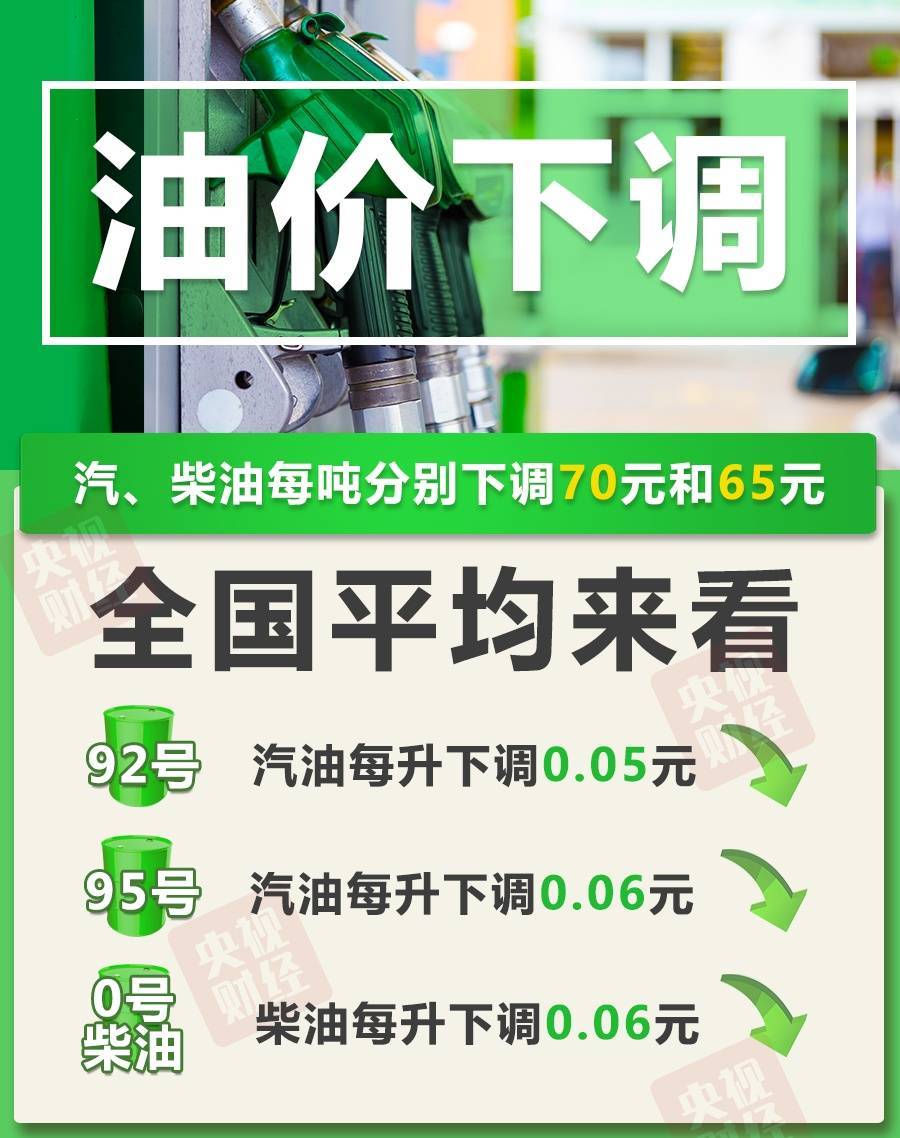 记者今天从国家发展改革委了解到,受国际油价下跌影响,国内汽柴油价格将于11月24日24时起下调。据国家发展改革委价格 监测中心监测,本轮成品油调价周期内(11月10日—11月21日)国际油价波动下行。 本次油价调整具体情况如下:从11月24日24时起,国内汽、柴油每吨分别下调70元和65元。 0号柴油每升下调0.06元。 记者给您算了一笔账,用92号汽油加满50升油箱将少花2.5元。物流行业以月跑10000公里,百公里油耗在38升的重型卡车为例, 在下次调价窗口开启前,单辆车的燃油成本将下降106元左右。 转自央视财经 来源:1012交通广播 全国平均来看: 92号汽油每升下调0.05元, 95号汽油每升下调0.06元, ...