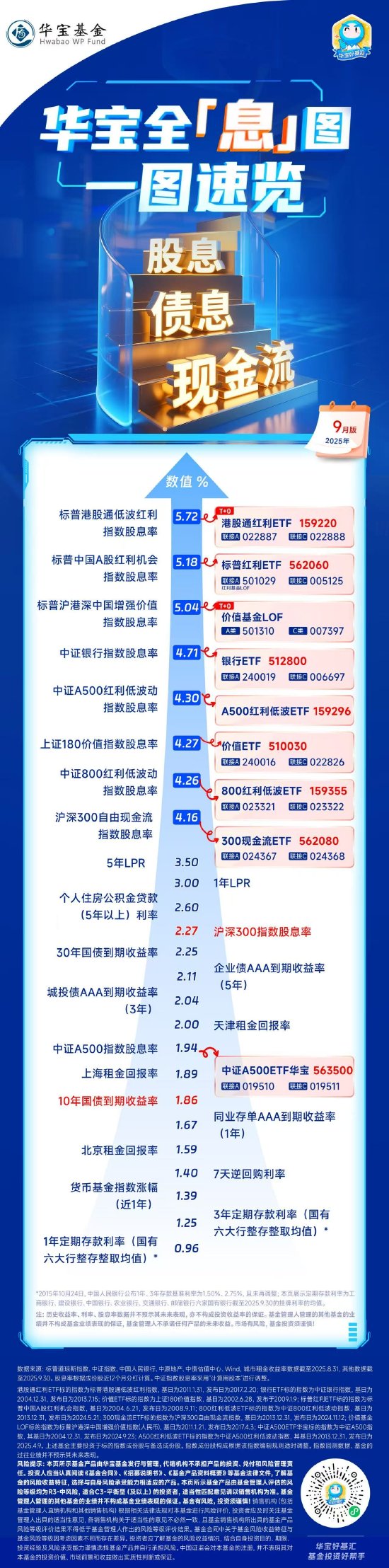 华宝全息图 | 红利指数股息率、债息、现金流,一图速览 (2025年9月)